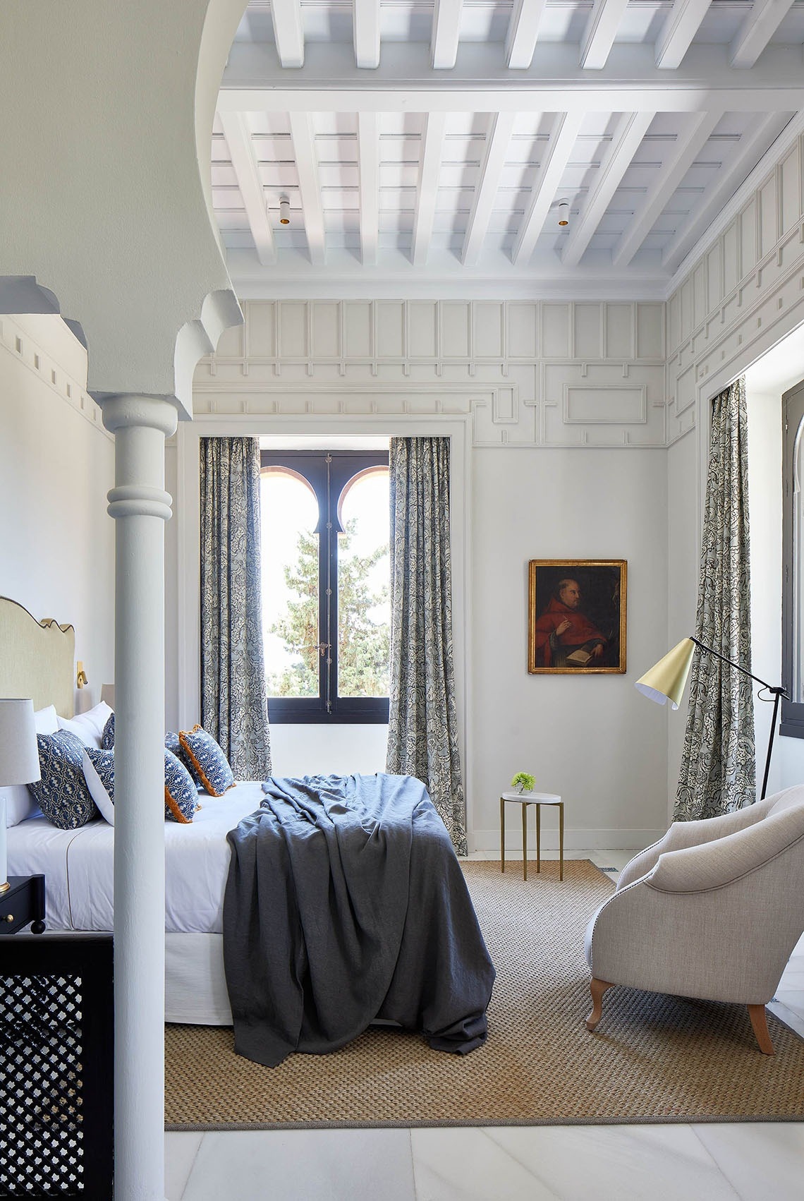 The Deluxe Double Rooms at Castillo de Santa Catalina offer a spacious and bright sleeping space. Its high ceilings and beautiful windows add a touch of classic distinction to an elegantly decorated 20 m² room, where every detail takes center stage.